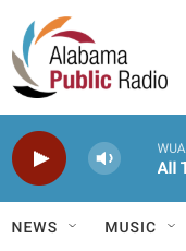 Connect to Alabama Public Radio's Website's main page at apr.org and look for a triangular "play" button in the upper left corner. In a Web browser, it looks like the image below. Select it and APR should start streaming.
